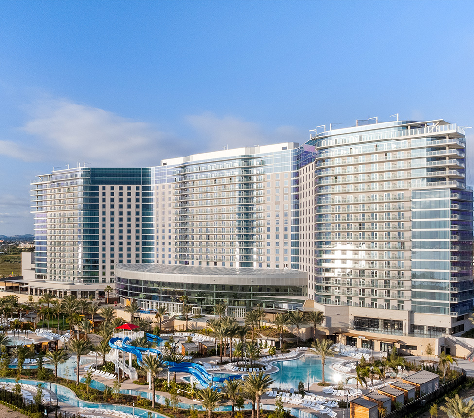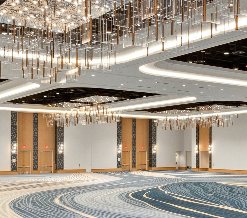 We supplied the doors, frames, and hardware for approximately 150 openings at the Gaylord Hotel & Resort in Chula Vista. The work included oversized convention hall pairs, restroom wood doors with custom wood jambs, and several custom restaurant openings, each equipped with Rockwood panic style pull hardware on the exterior and seamless panic bars inside.