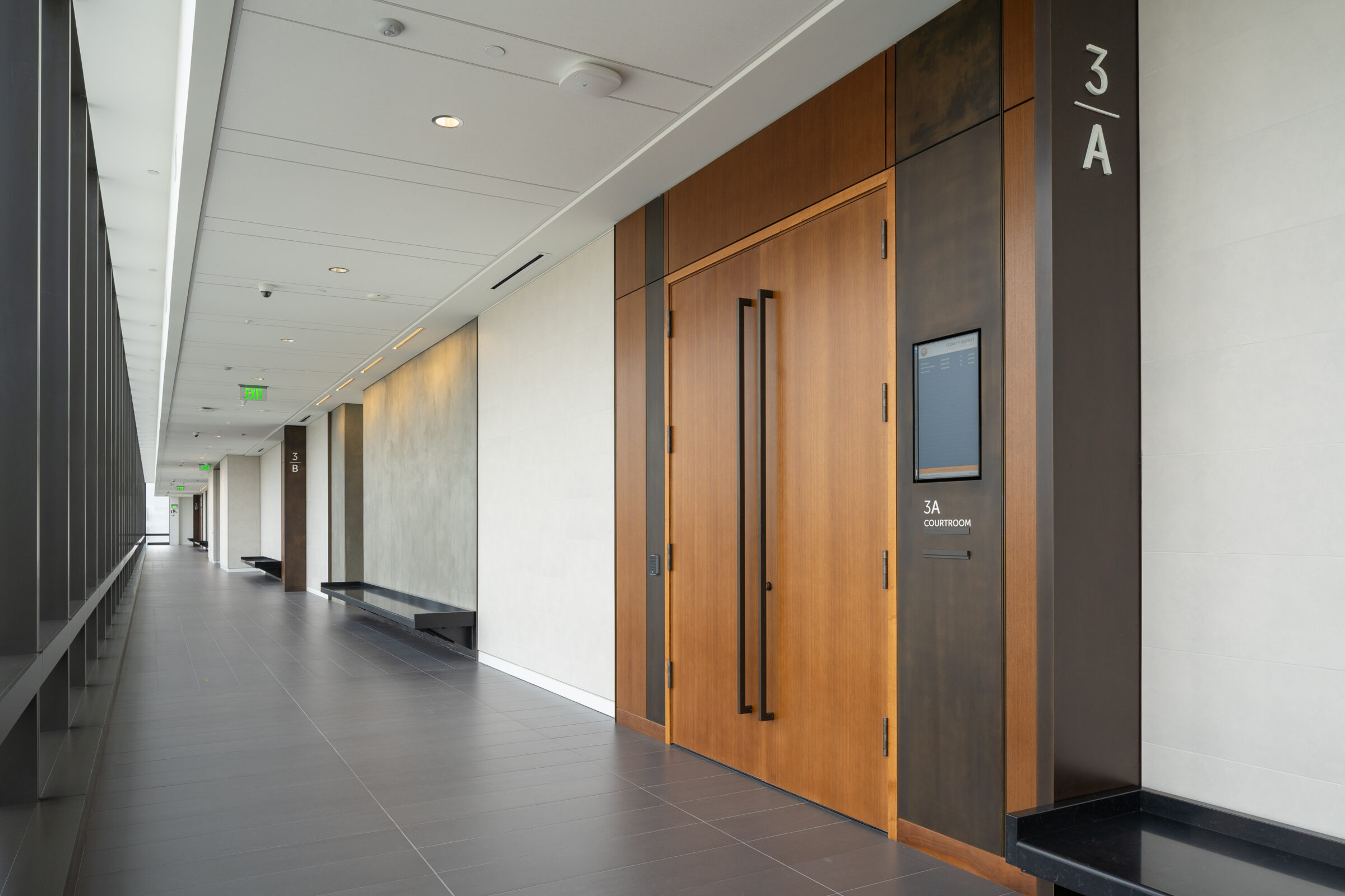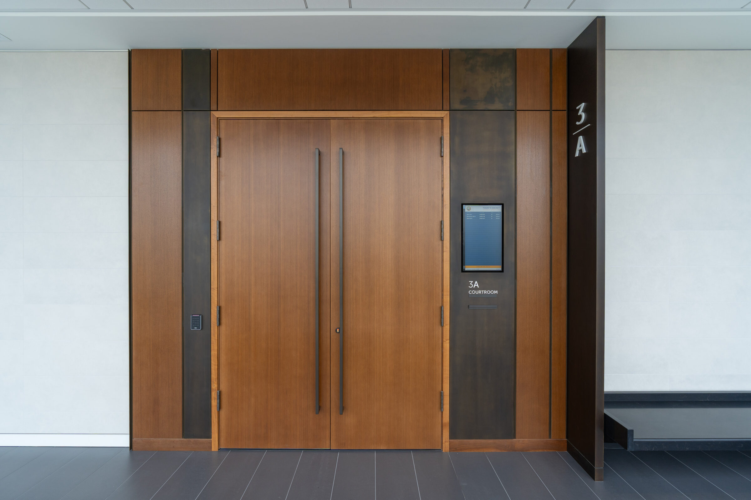 S&S Hardware supplied the wood doors and wood jambs for the courtrooms, along with electronic hardware for access control, custom full‑length push and pulls, and sound‑seal solutions. Our team ensured all products met the project’s architectural and performance requirements.
